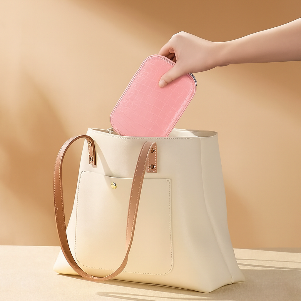 Compact, pratique et résistant à la poussière, il combine boîte à bijoux et trousse de maquillage dans un seul accessoire portable. Idéal pour les courts voyages, sorties ou retouches rapides.
